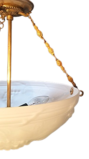 Large cast glass antique bowl light fixture H 14in. x D 14in.